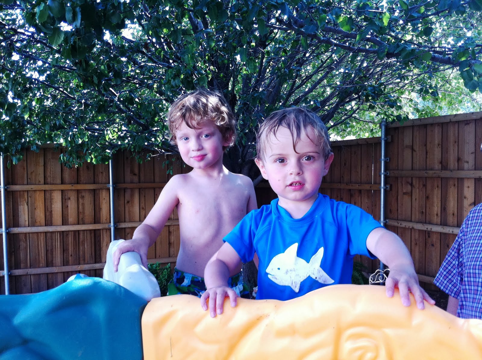 Hello All! I hope that all four of you who may read this had a great holiday weekend. We had a busy and super fun weekend with family and friends. I think that my kids ate hotdogs for at least three days straight!! On Sunday we went to my cousin's house and had a great time with the Vosses, but alas I took no photos! On Monday, we watched the neighborhood parade and hung out at the picnic at the park for a while. Carter was so excited about the bounce houses. Everyone came back to our house for lunch and some baby swimming time. Here are some photos from the day. We had such a great day!